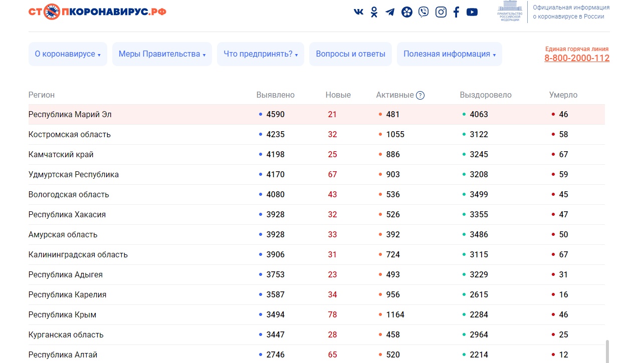 Что касается обстановки по стране в целом, то в России за сутки зафиксировано 5905 случаев коронавируса. Выздоровело 5339 человек, умерло 134.