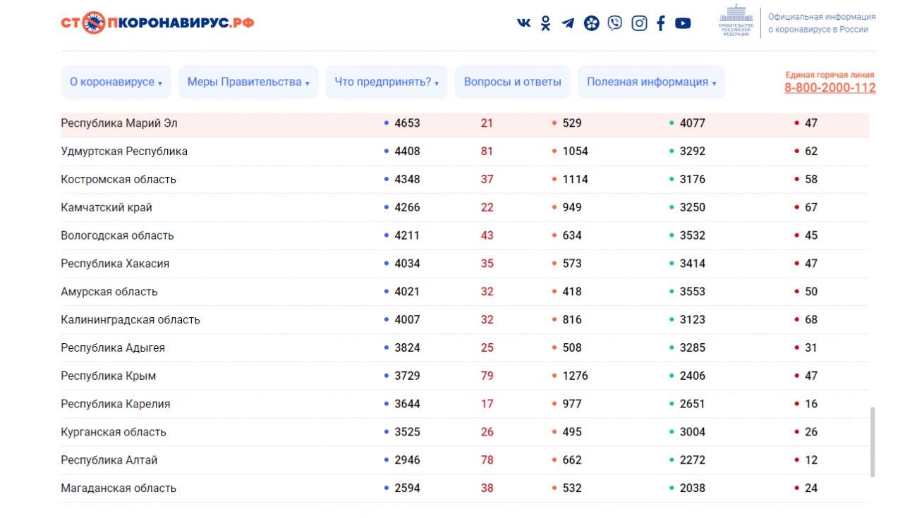 В Марий Эл за прошедшие сутки выявлен 21 новый случай COVID-19. По информации сайта «стопкоронавирус.рф», всего с начала пандемии в республике заболело 4653 человека. За выходные дни от коронавируса умер ещё один человек. Число жертв болезни выросло до 47.