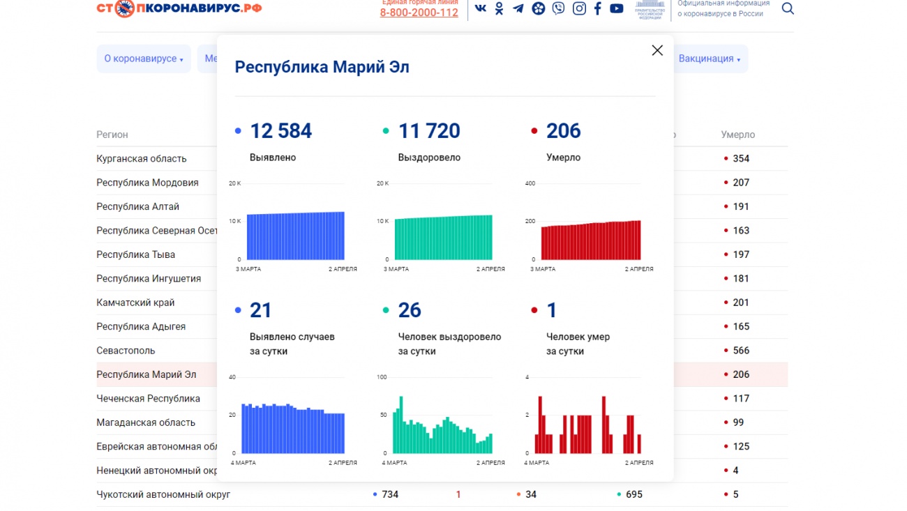 По информации сайта «стопкоронавирус.рф», в Марий Эл за прошедшие сутки зафиксирована ещё одна смерть от коронавируса. Общее число умерших от болезни — 206 человек.