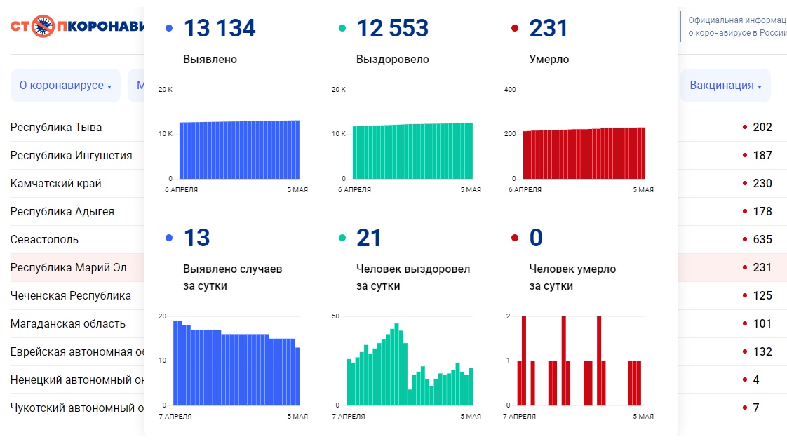 Во вторник, 4 мая, по 4 пострадавших установлено в Волжске и Йошкар-Оле, 3 — в Медведевском районе, по 1 — в Советском районе и Козьмодемьянске.