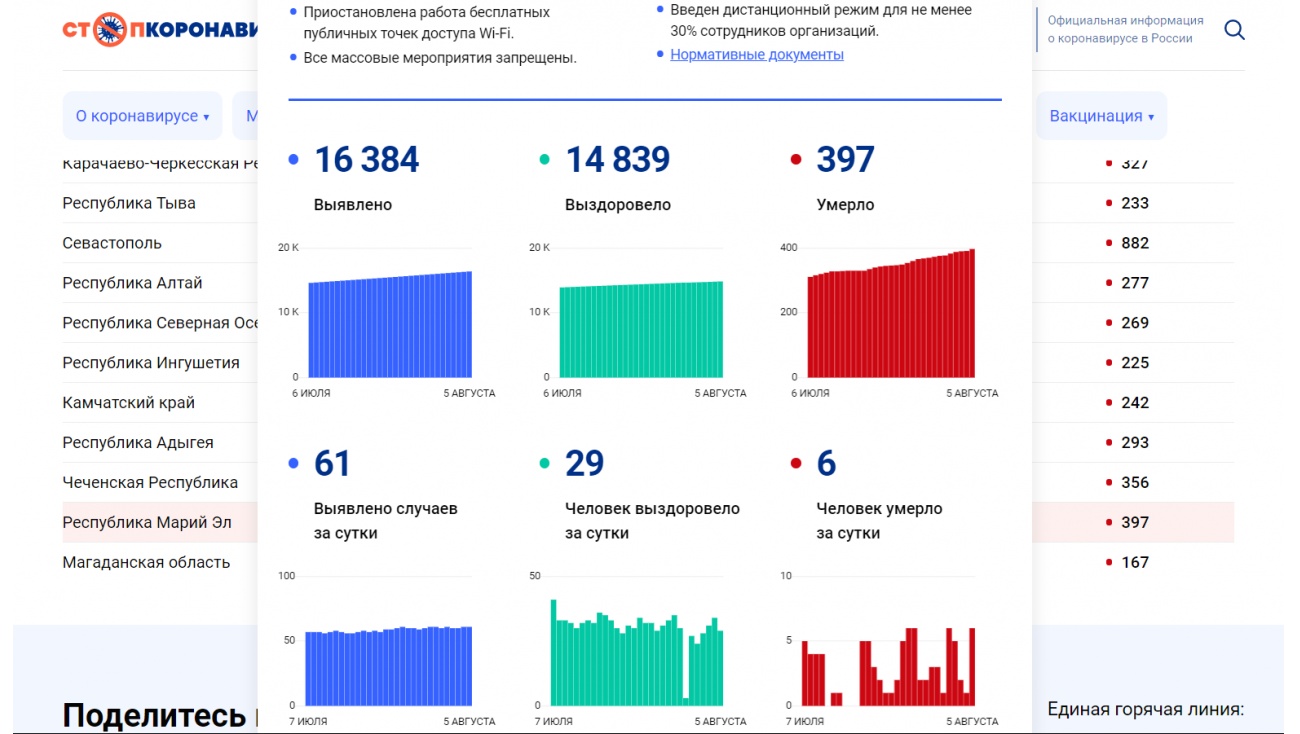 За весь период по России умерло 162 509 человек, в Марий Эл — 397.