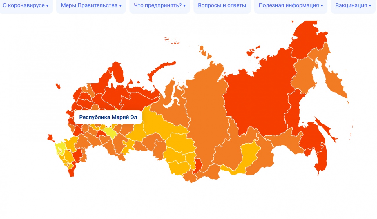 Портал стопкоронавирус.рф разместил счётчик вакцинации от COVID-19 и тепловую карту ситуации с коронавирусом нового типа в регионах России.