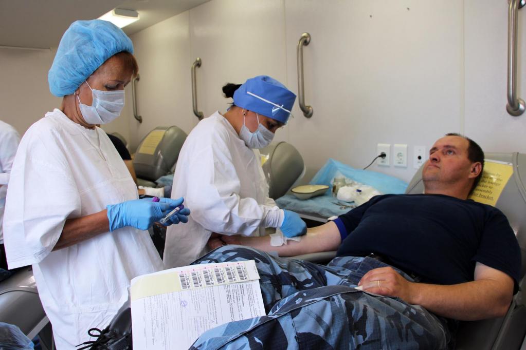 К донорской акции присоединились сотрудники отделов по конвоированию и специального назначения «Ястреб», а также исправительного центра, функционирующего при исправительной колонии. Сначала медики Республиканской станции переливания крови определили группу крови и уровень гемоглобина каждого потенциального донора. Лишь затем, после консультации врача, сотрудники получили возможность пройти в мобильную станцию для сдачи крови. Некоторые из участников акции делают это не первый раз.