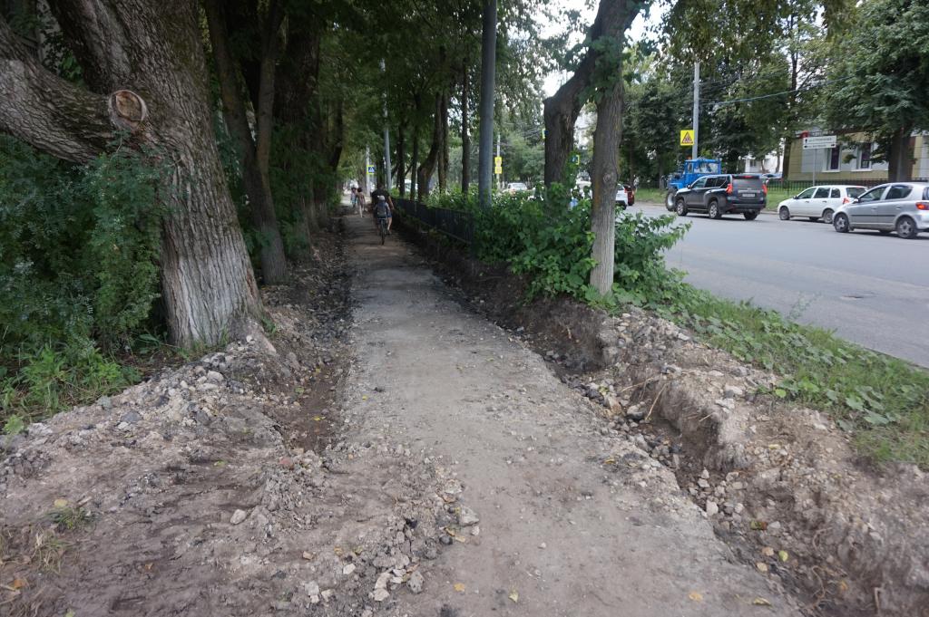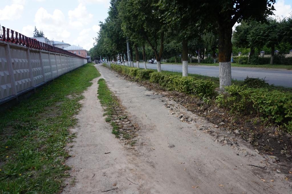 На улице Подольских курсантов начались работы по ремонту пешеходной зоны.