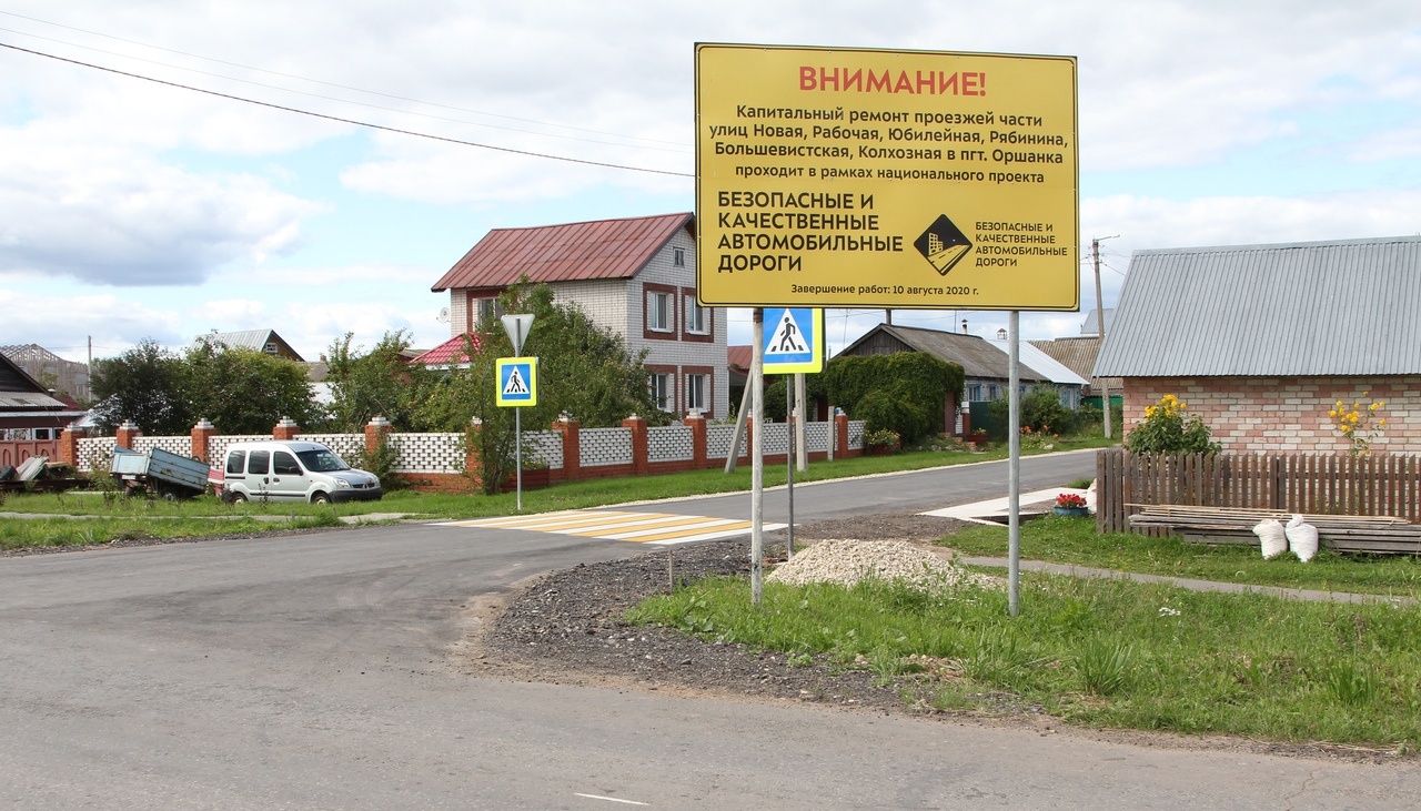 В Оршанке накануне введены в эксплуатацию 6 поселковых улиц: Новая, Рабочая, Юбилейная, Рябинина, Большевистская, Колхозная общей протяжённостью 2,86 км. Ремонт и реконструкция дорожного полотна велась в рамках национального проекта «Безопасные и качественные автомобильные дороги». Стоимость работ по контракту составила 32 млн рублей.