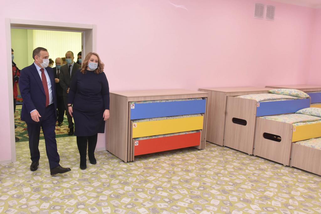 Александр Евстифеев и мэр города Евгений Маслов перерезали красную ленточку и осмотрели внутренние помещения и площадки для прогулок детей.