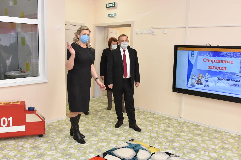 Заведующая детским садом Ольга Юрченко рассказала Александру Евстифееву, что тема спорта и физкультуры присутствует не только в оформлении, планируется проводить с детьми оздоравливающие процедуры, рассказывать о пользе здорового образа жизни. Самое главное, отметила Ольга Юрченко, для спортивных и познавательных занятий в детском саду созданы все необходимые условия.