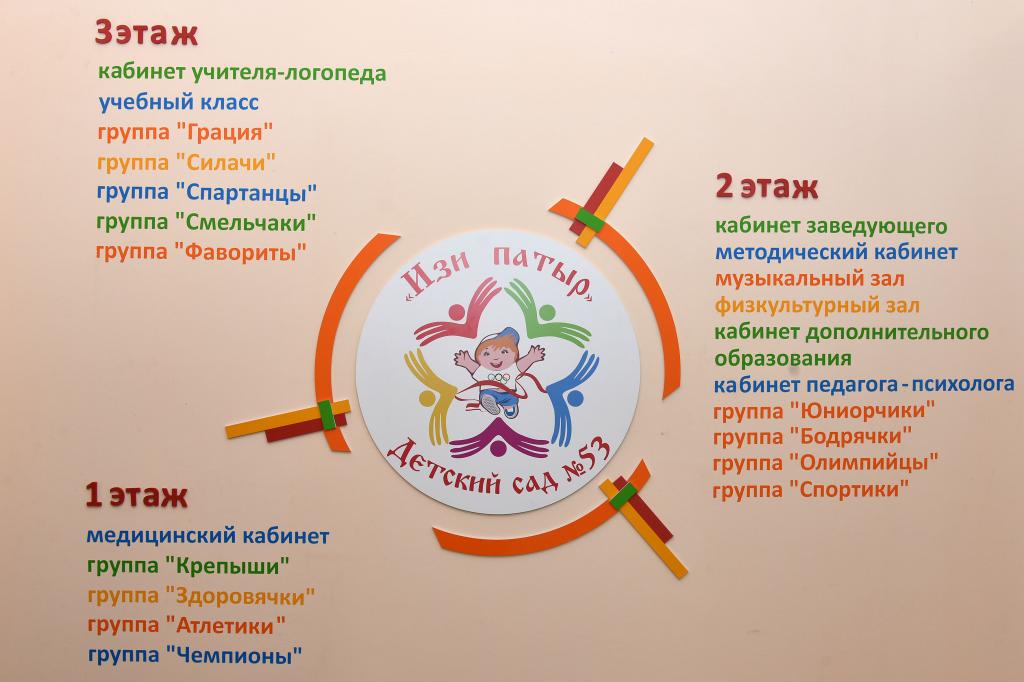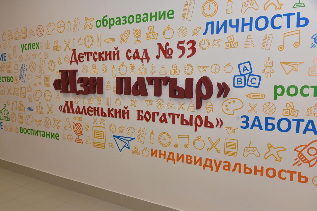 Детский сад носит название «Изи патыр», что в переводе с марийского языка означает «Маленький богатырь». Название хорошо передает атмосферу, которая царит внутри дошкольного учреждения. В современном здании оборудовано 13 групп, музыкальный и физкультурный залы, кабинеты психолога и логопеда. Яркое красочное оформление в соответствии со спортивной тематикой поднимает настроение и заряжает энергией.