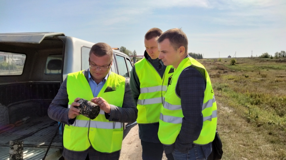 В ходе поездки производился отбор кёрнов верхнего слоя и слоя регенерации асфальта для проведения испытаний в лаборатории ГКУ «Марийскавтодор».