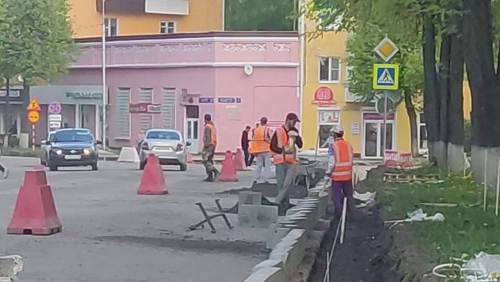 В Йошкар-Оле на проспекте Гагарина ведутся работы по монтажу бортовых камней.