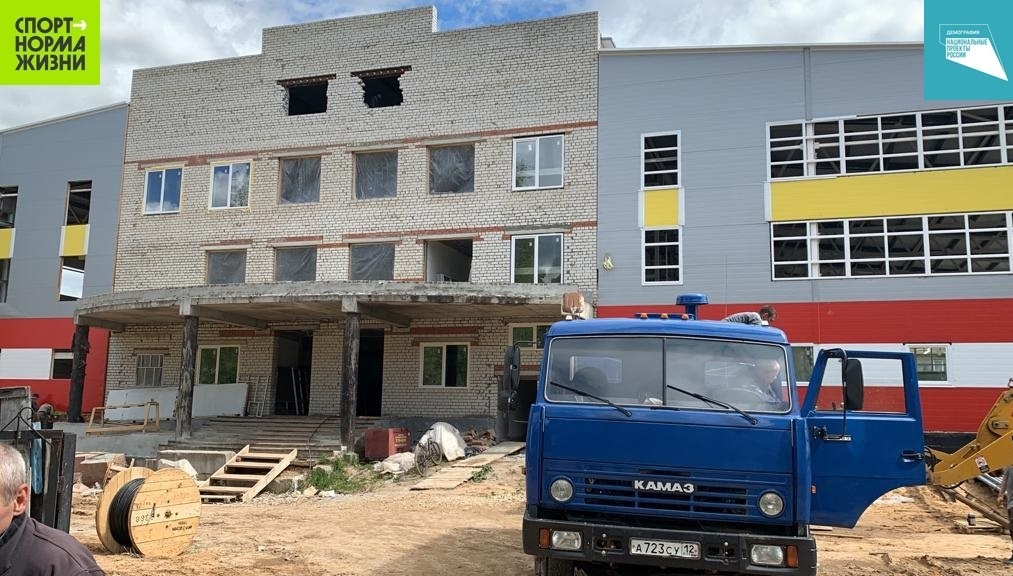 В посёлке Новый Торъял продолжаются работы по завершению строительства физкультурно-оздоровительного комплекса.