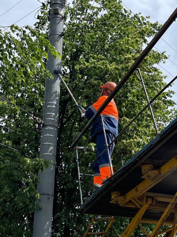 Так, на ул. Лебедева, ул. Кирова, ул. Карла Либкнехта, ул. Анциферова, пр. Гагарина и ул. Баумана сотрудниками муниципального предприятия были покрашены опоры контактной сети.