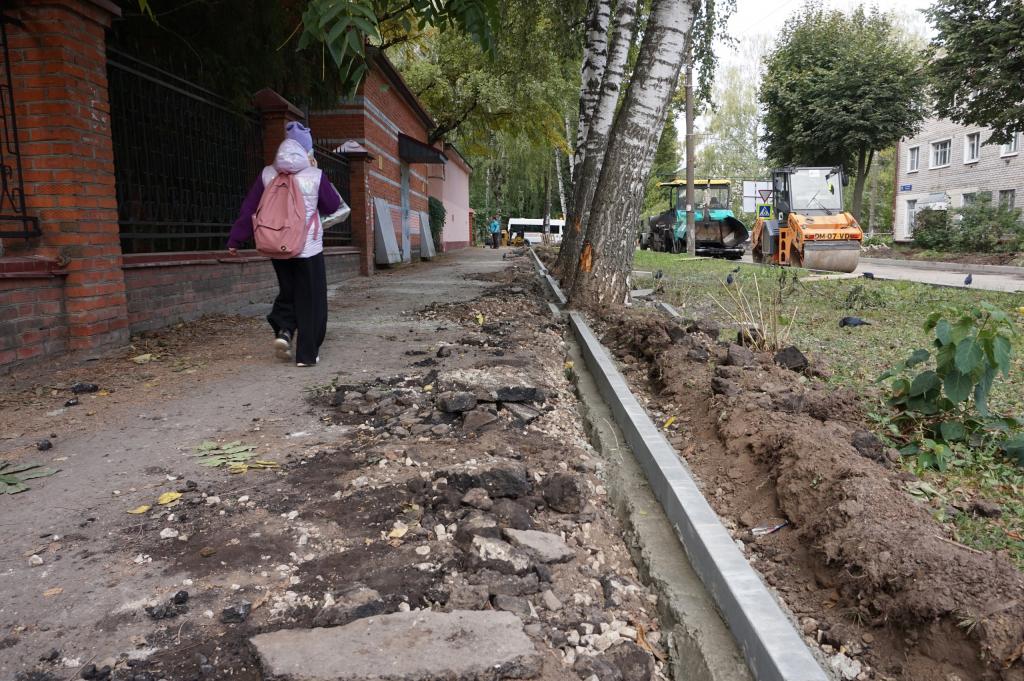 На данный момент подрядчики уже фрезеровали дорожное покрытие, демонтировали старые бортовые камни и начали устанавливать новые.
