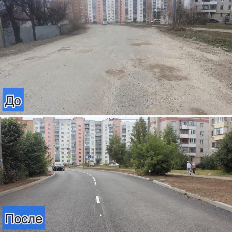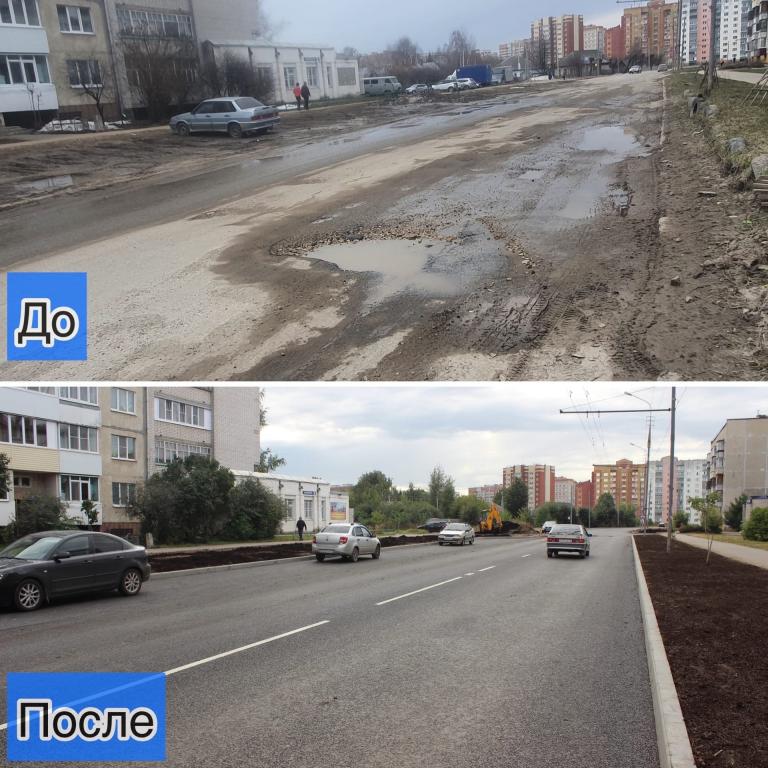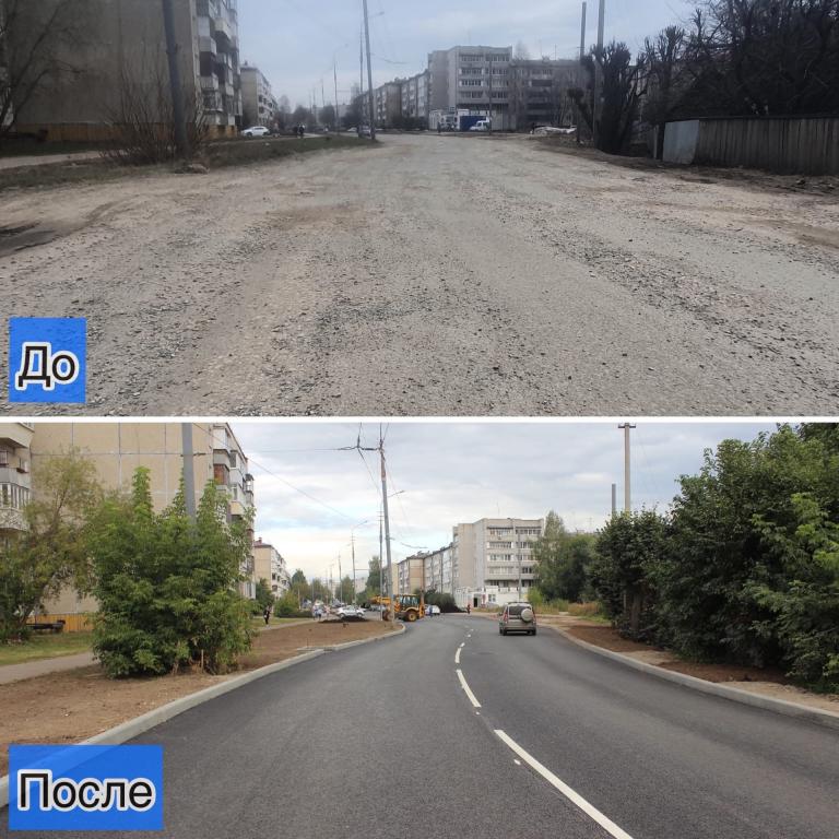 Ремонт проезжей части, который начался ещё в прошлом году, продолжили и в этом дорожном сезоне. Итогом работ стала качественная автодорога с новым асфальтом и бортовыми камнями. Также обновлена дорожная разметка и благоустроены газоны.