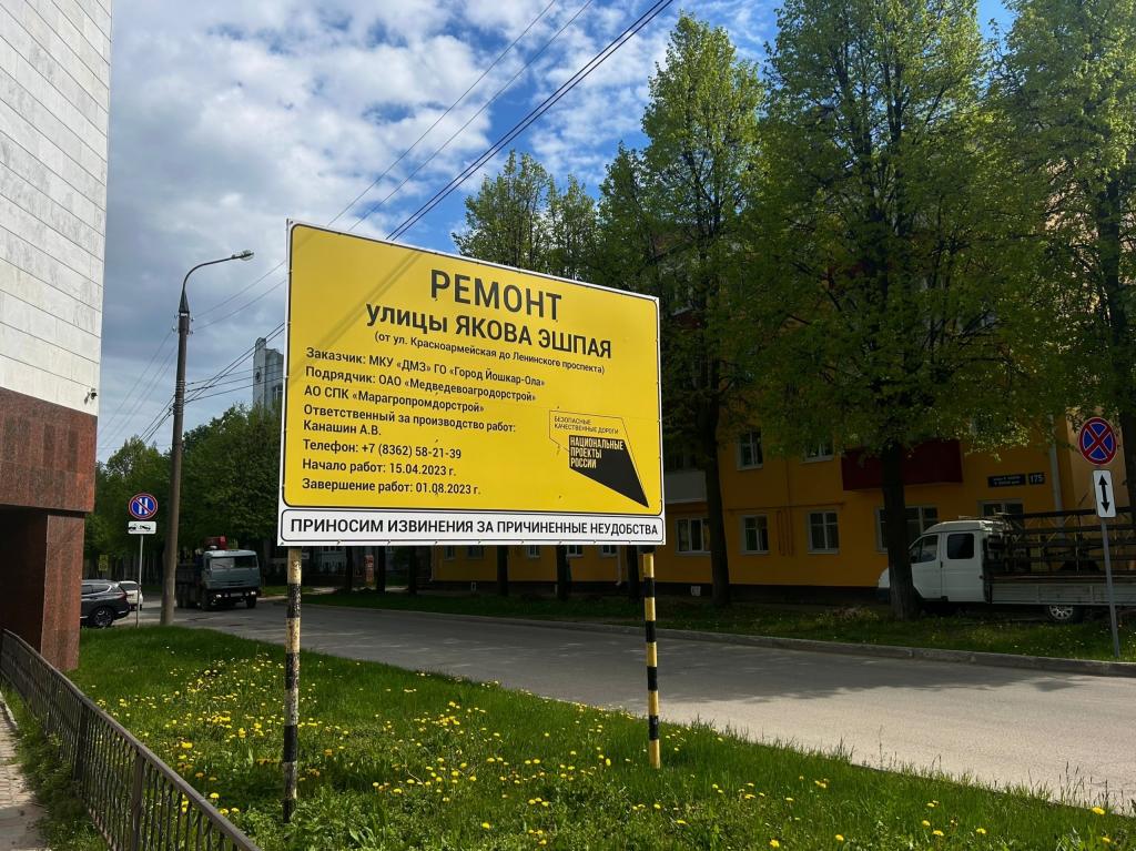 В Йошкар-Оле из-за ремонта дорог будут закрывать для движения улицы Эшпая и Строителей.