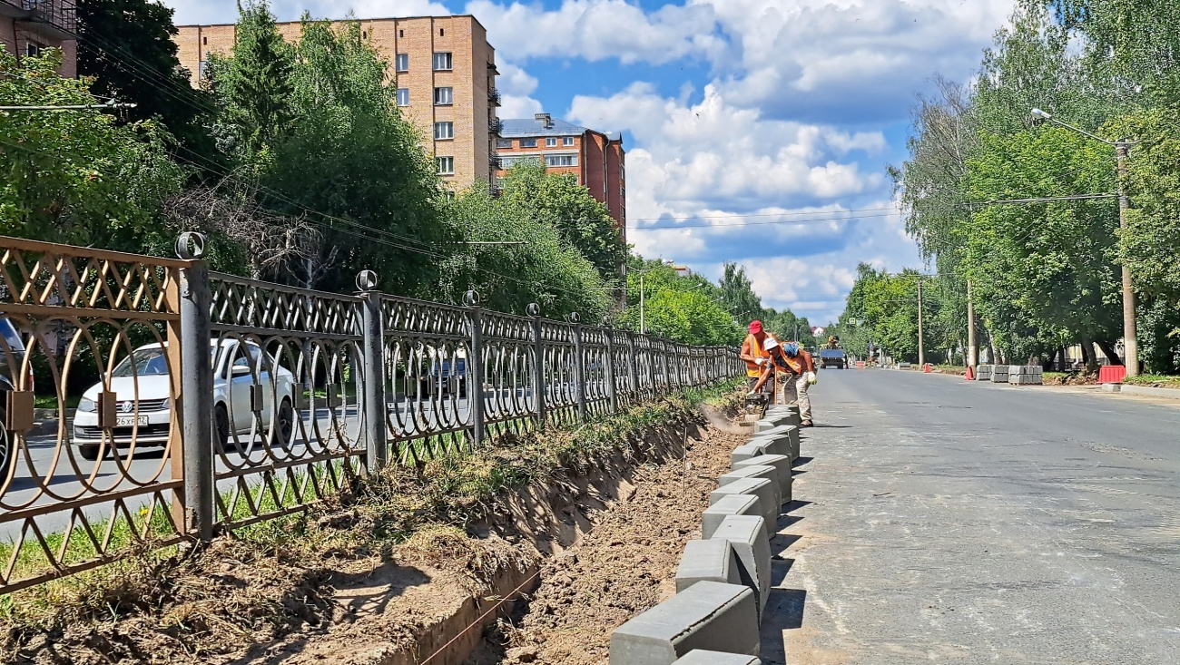 В настоящее время подрядчики демонтируют старые бортовые камни и устанавливают новые. После этого снимут старое покрытие, уложат два слоя асфальтобетона, восстановят газоны и нанесут разметку.