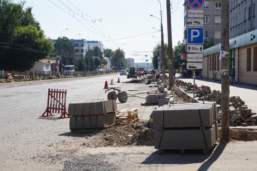 На данный момент на участке от ул. Машиностроителей до ул. улицы Я. Эшпая укладывают асфальтовое покрытие и продолжают демонтаж старых бортовых камней и установку новых. Одновременно с этим также проводят работу по переустройству колодцев.