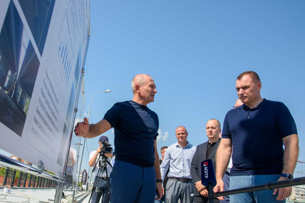 Юрий Зайцев проверил объём выполненных работ, проведённых на Вознесенском мосту, и обсудил ремонт участков автодорог, которые должны быть завершены осенью 2023 года.