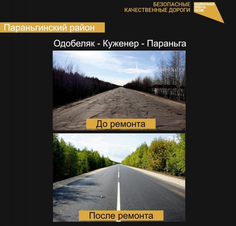 В Параньгинском районе завершили ремонт 11,7 км автомобильной дороги Одобеляк — Куженер — Параньга. На объект затрачено 250 млн рублей, отмечает группа «Дороги Марий Эл».