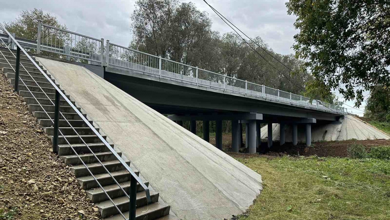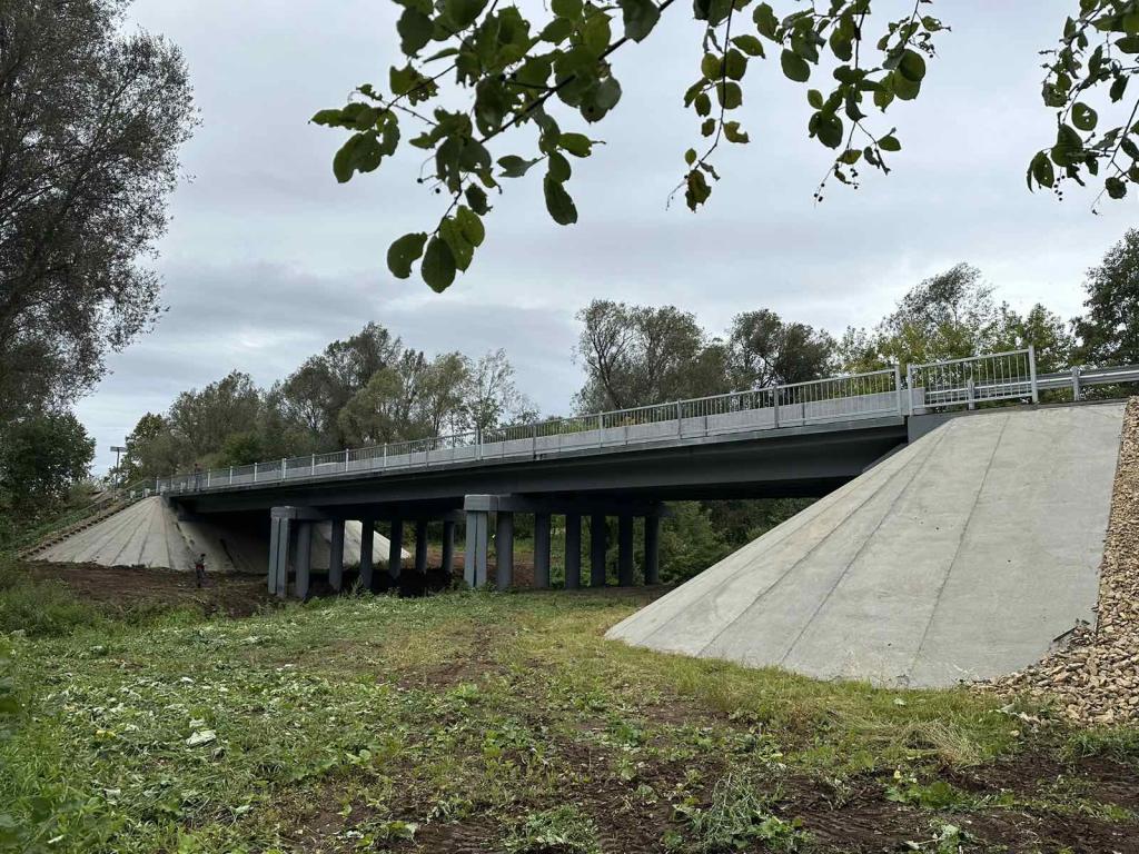 Подрядная организация заменила здесь мостовое полотно, устроила гидроизоляцию, уложила новый асфальт, отремонтировала береговые опоры, установила ограждение, нанесла разметку, благоустроила и озеленила территорию.