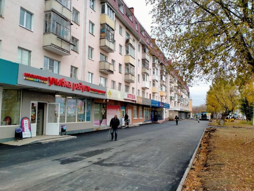 Подрядная организация уже установила бортовые камни, сейчас укладывают асфальтобетонное покрытие и ремонтируют смотровые и дождевые колодцы. Протяжённость участка ремонта более 300 метров.