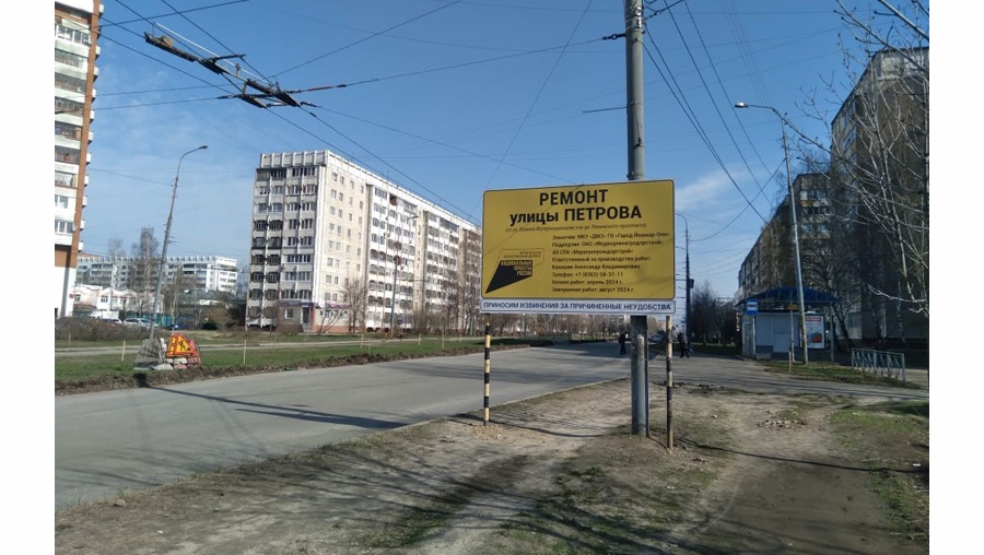 На улице Петрова в Йошкар-Оле в самом разгаре дорожные работы. Здесь по нацпроекту ремонтируют участок от ул. Воинов-Интернационалистов до Ленинского проспекта.