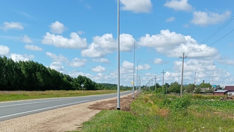 В Марий Эл продолжается установка новых линий освещения вдоль региональных дорог по нацпроекту «Безопасные качественные дороги».