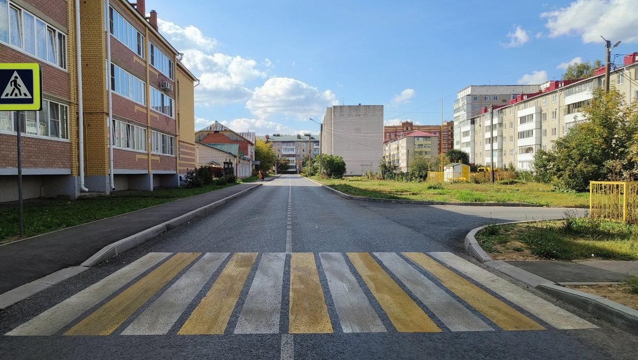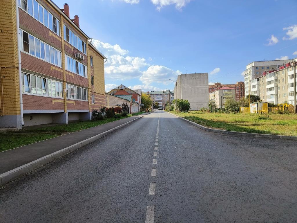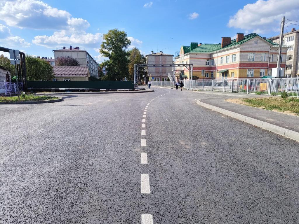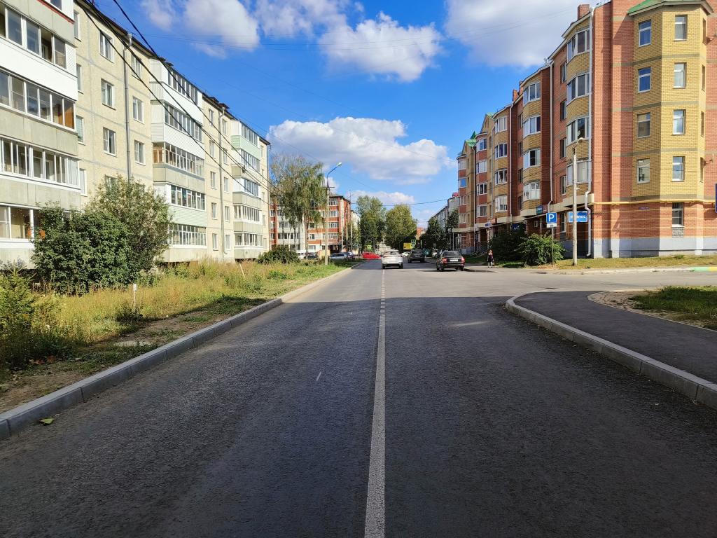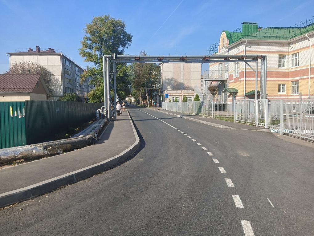 На дороге отфрезеровали изношенное покрытие, положили два слоя асфальта, восстановили пешеходный тротуар и установили бортовые камни. На улице находится много социально значимых объектов: детсады, школа, бассейн, дом детского творчества.