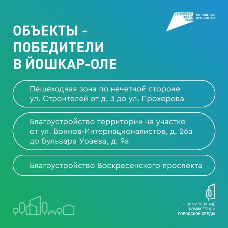 В Йошкар-Оле определили победителей в голосовании по благоустройству в 2026 году.