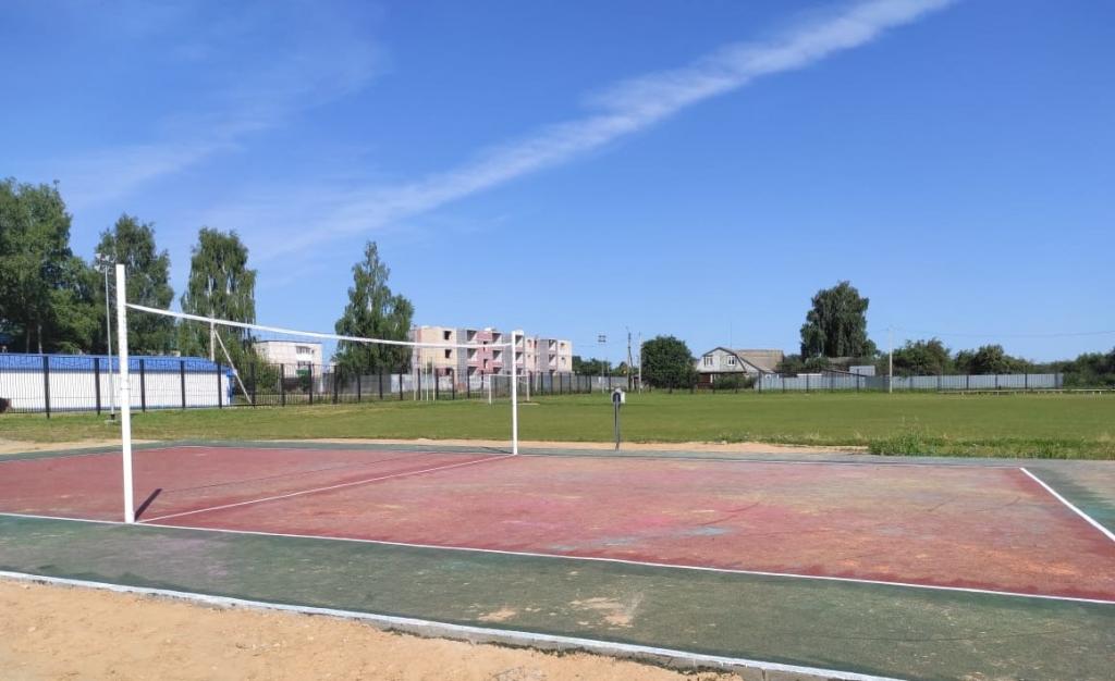 Особое внимание в этом году уделили созданию современной волейбольной площадки. Здесь обустроили однослойное резиновое покрытие толщиной 10 мм. Площадка уже готова принять первых игроков.