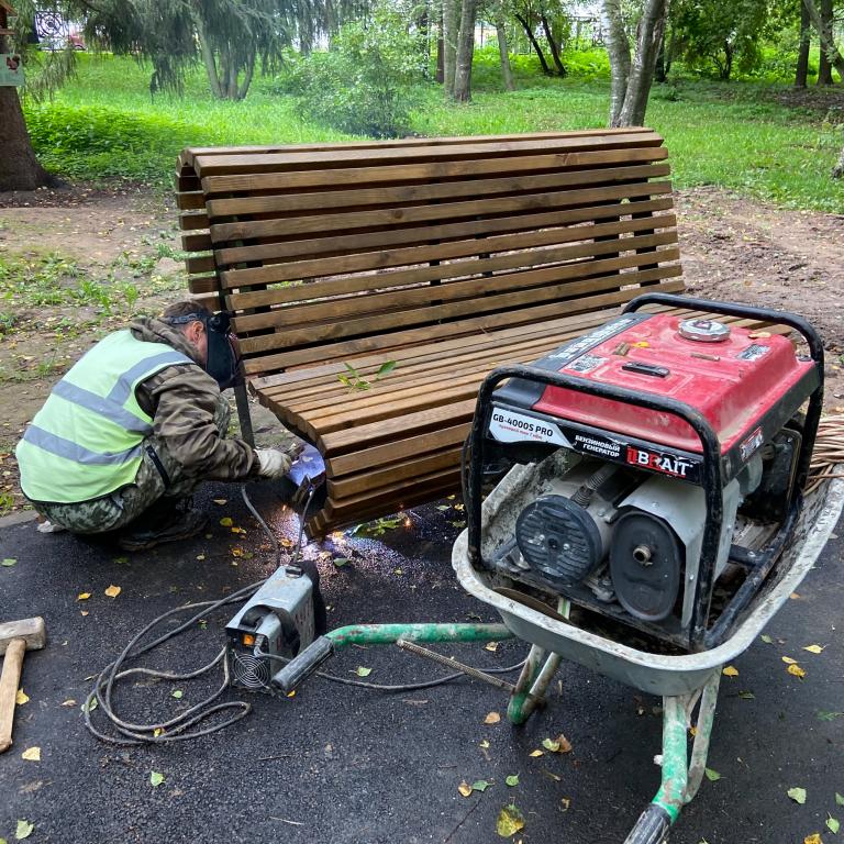 Здесь уже сделали тротуары для пешеходов, установили столбы освещения. Недавно на территории появились новые стильные скамейки и урны для поддержания чистоты.