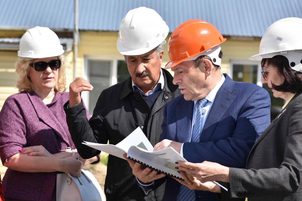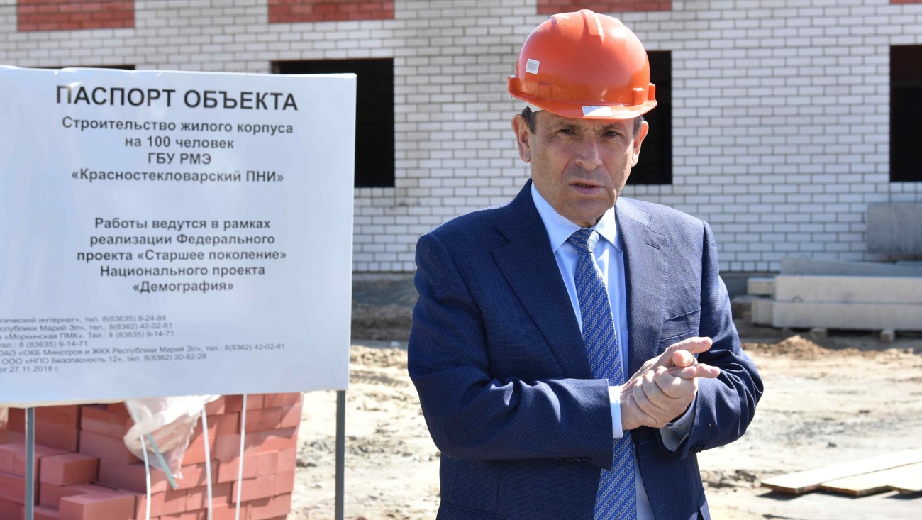 Глава Марий Эл посетил строительную площадку, осмотрел территорию интерната и пообщался со строителями. По словам председателя производственного кооператива «Моркинская ПМК» Бориса Захарова, все работы ведутся с опережением графика.