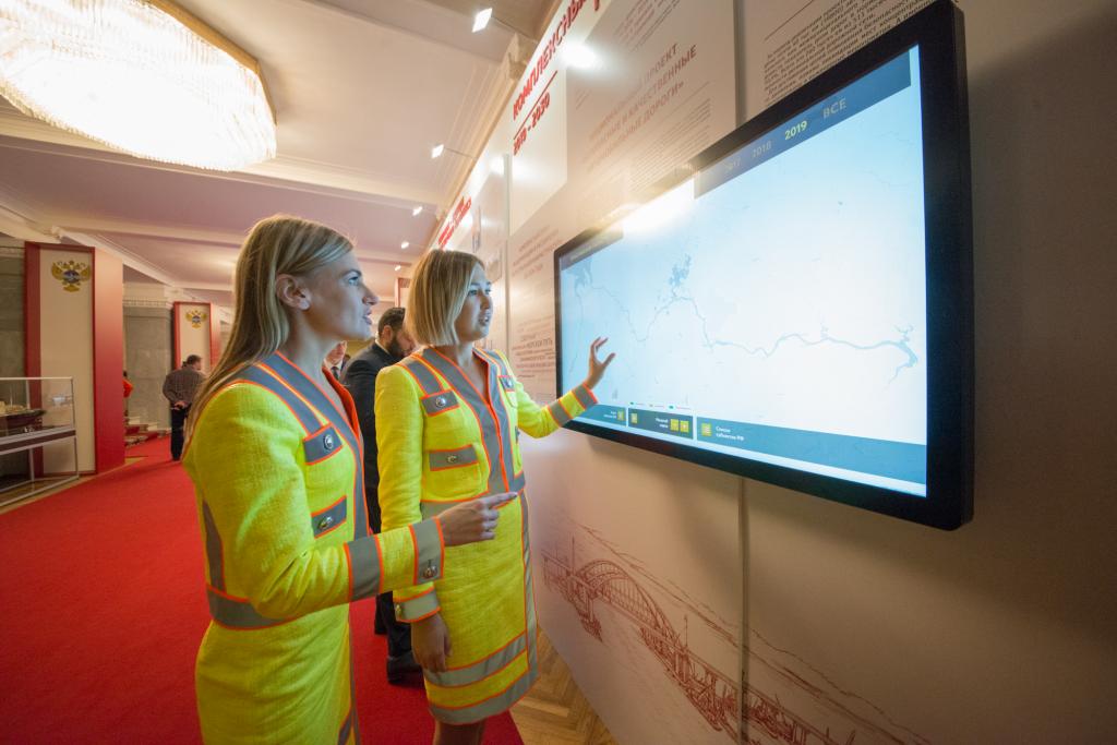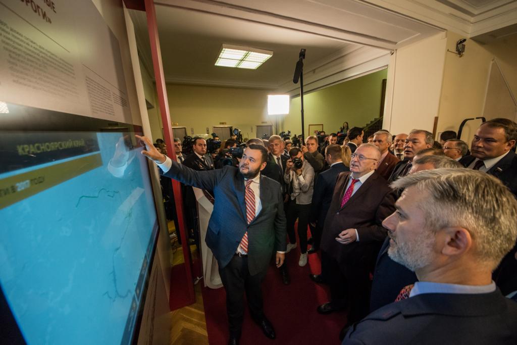 Интерактивную карту национального проекта «Безопасные и качественные автомобильные дороги» представили в рамках выставочной экспозиции Минтранса России «Законъ. К истории транспорта России» в Государственной Думе РФ. С ходом дорожных работ в субъектах ознакомились председатель Госдумы Вячеслав Володин, Министр транспорта РФ Евгений Дитрих, руководитель Федерального дорожного агентства Андрей Костюк, депутаты фракций разных политических партий.