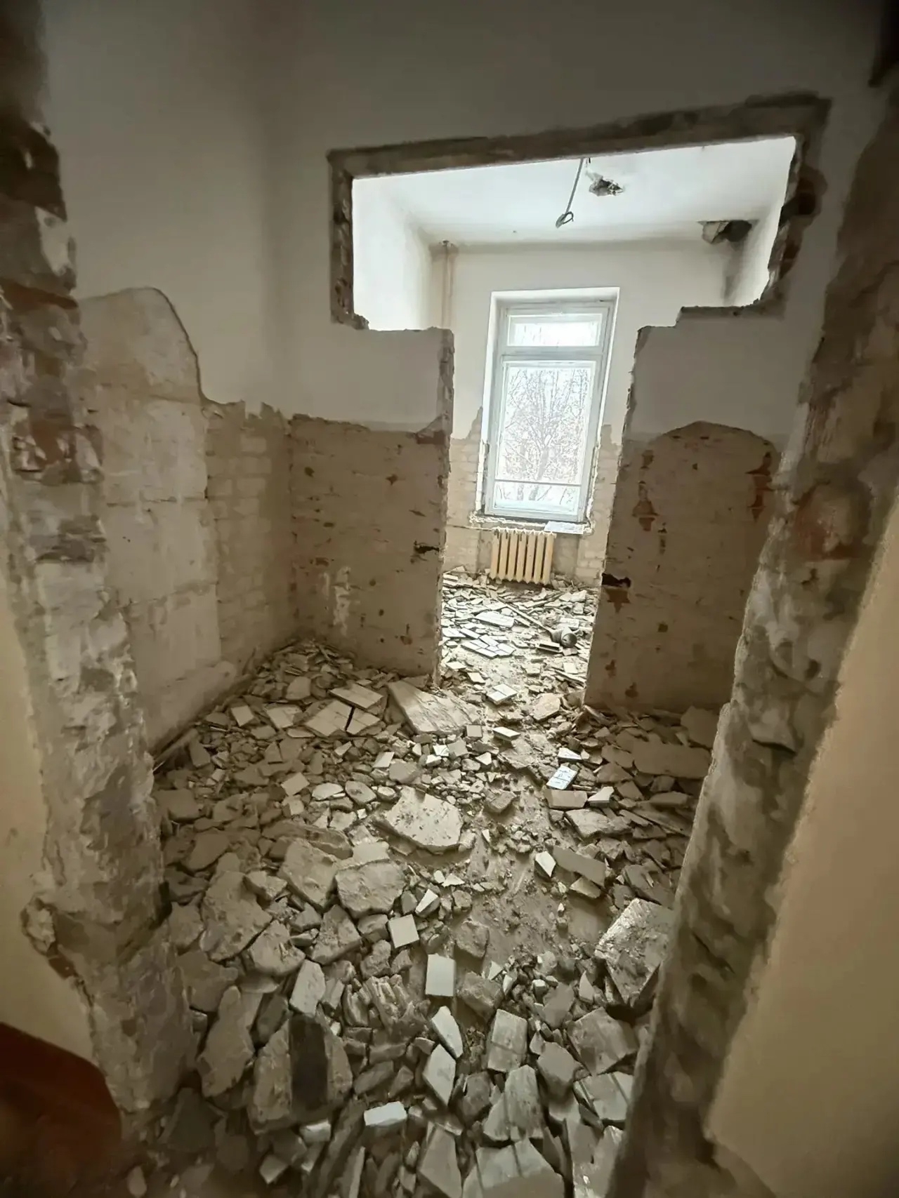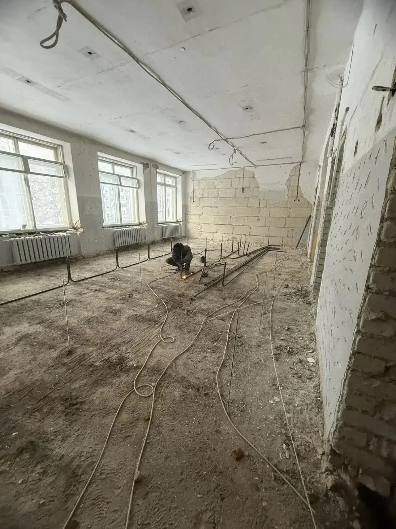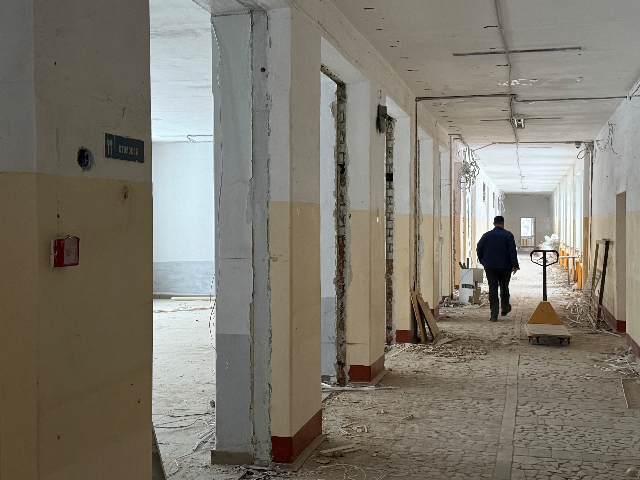 В школе № 16 полным ходом идут демонтажные работы. Полностью убираются все напольные покрытия и облицовка стен, разбираются устаревшие инженерные системы: электропроводка, водоотведение и прочие коммуникации, идёт расчистка кровли.