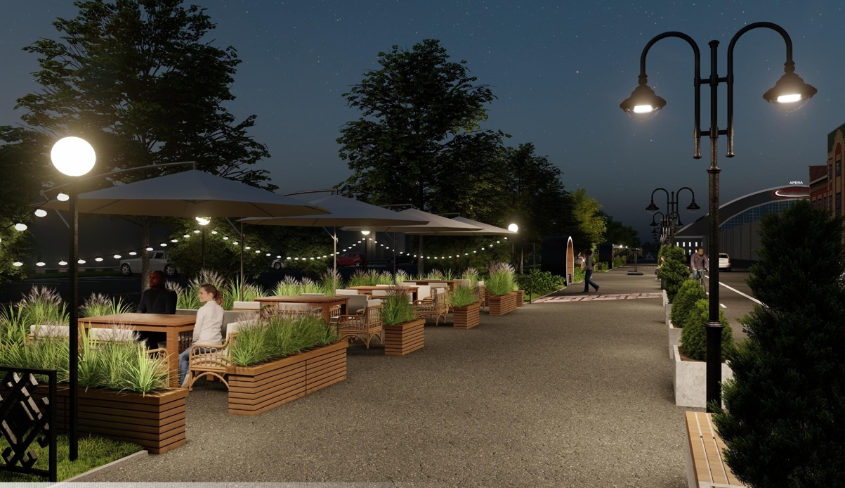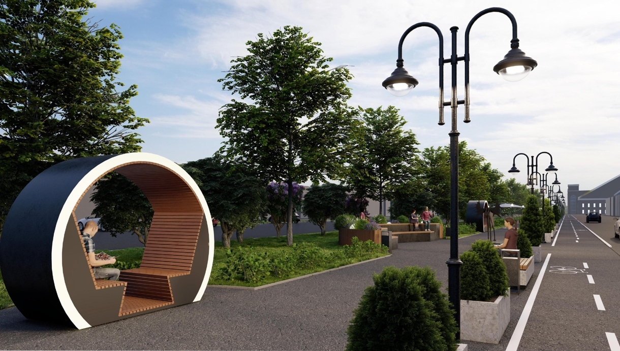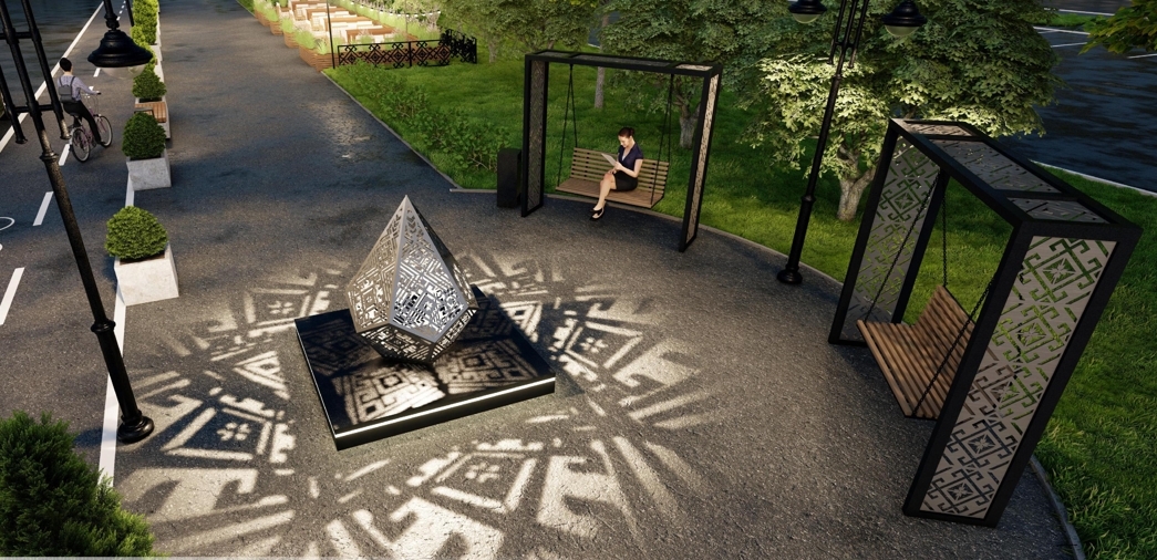 Здесь появятся удобная пешеходная инфраструктура, велодорожки, зоны отдыха с качелями и скамейками, красивое освещение, уличные вазоны с растениями. Вдоль дороги высадят крупномеры. Живая изгородь из кустарников не только украсит проспект, но и снизит шум от дороги. В оформлении территории используют национальные символы нашего края.
