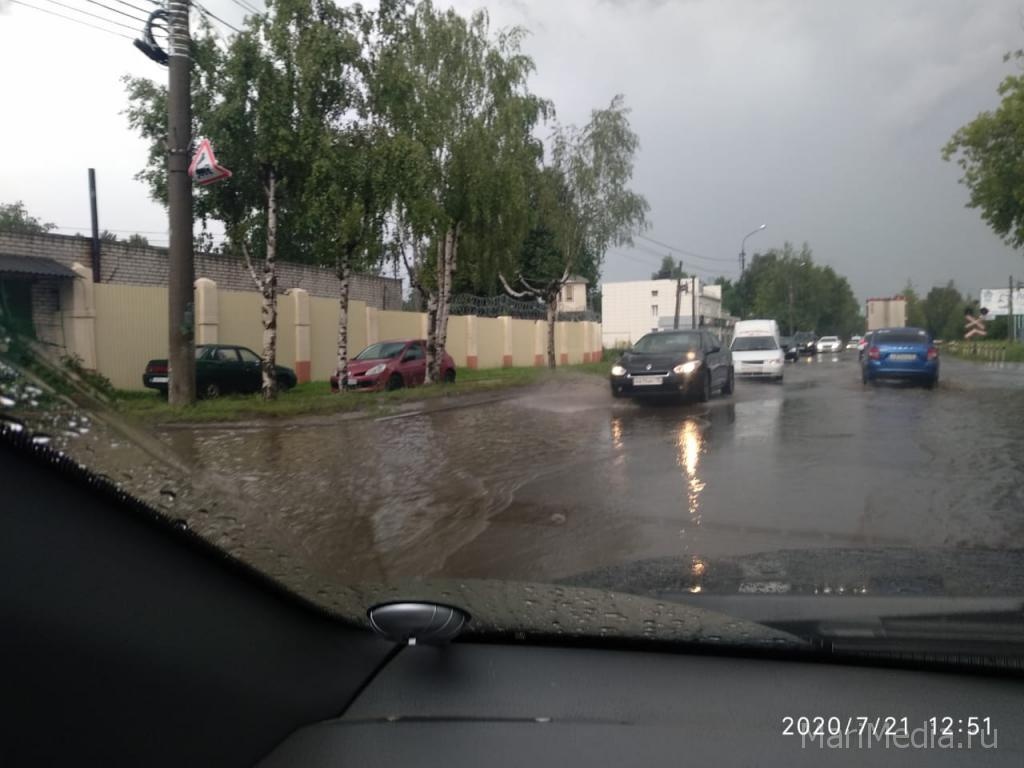 Как сообщили ИА «МариМедиа» очевидцы, проезжая часть улицы Карла Маркса в районе железнодорожного переезда затоплена на 40 см, образовалась огромная пробка.