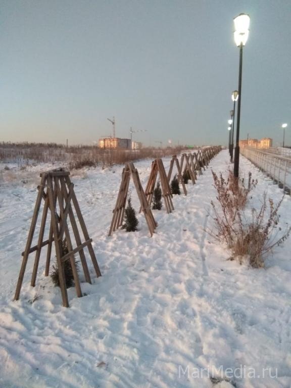 В «Сомбатхее» на Аллее здоровья появились деревянные заграждения. Чтобы сохранить саженцы туй от непогоды и вандалов специалисты МУП «Город» закрыли их деревянными щитами. Как рассказали ИА МариМедиа в администрации предприятия, работы были завершены две недели назад.