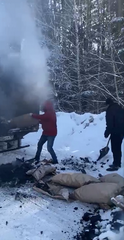 Ребята выбежали из своей машины, вызвали пожарную службу и до прибытия огнеборцев помогали водителю бороться с возгоранием. Огнетушители быстро закончились, поэтому пламя закидывали снегом. Сложность заключалась в том, что уголь внутри кузова не горел, а тлел, сильно задымляя пространство кузова. А как только его вытаскивали из машины, из-за притока воздуха появлялось открытое пламя.