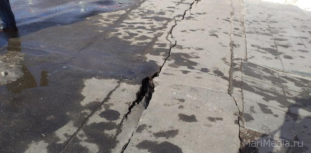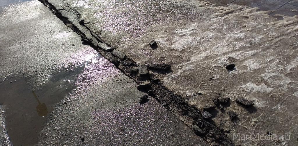 В редакцию ИА МариМедиа поступил фото-сигнал от жителей столицы, которые обеспокоены состоянием Театрального моста. На фотографиях видно, что полотно моста с обеих сторон в месте соединения с берегом разрушается. В нескольких местах видна арматура.