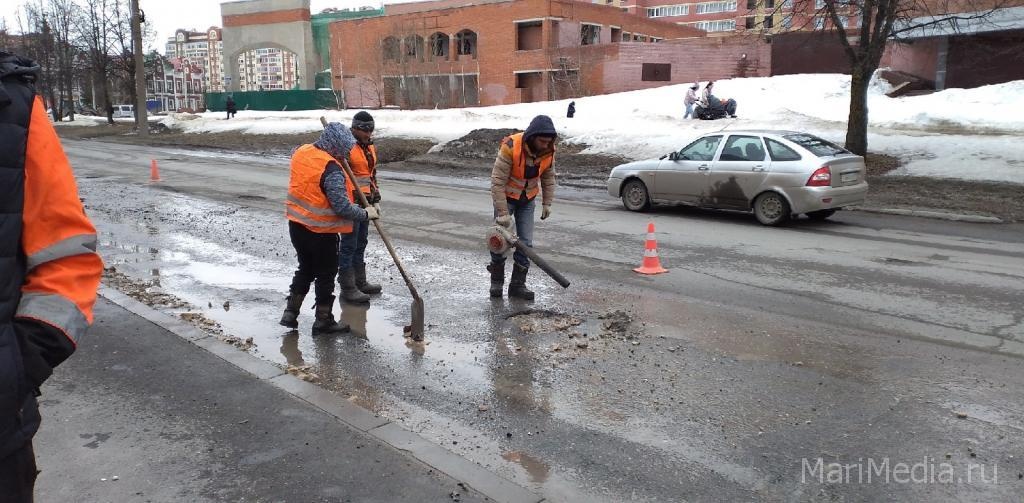 В городе продолжается ямочный ремонт. Как писало ранее ИА МариМедиа, в выходные были залиты ямы жидким асфальтом на ул. Свердлова, ул. Зарубина, ул. Строителей, ул. Кокшайский тракт и бульваре Победы.