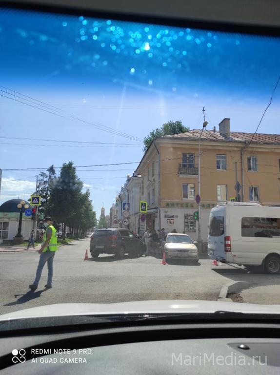 Очевидцы прислали фото и видео с места ДТП. Около 9 часов на перекрёстке ул. Советской и бульвара Чавайна столкнулись две иномарки.