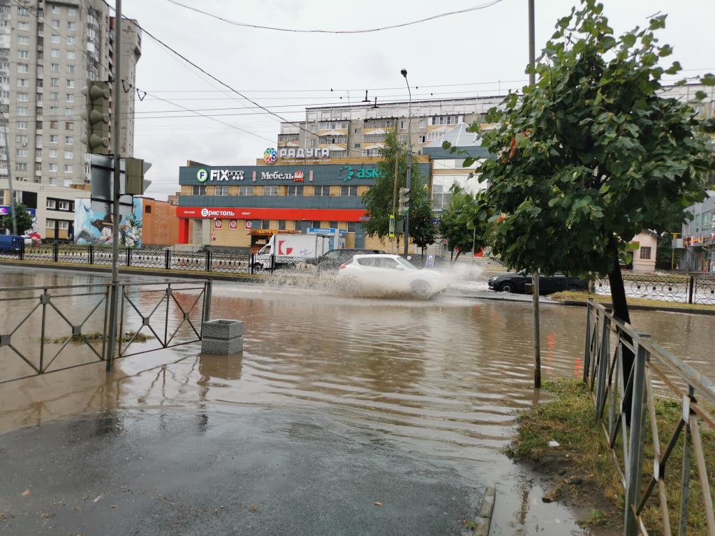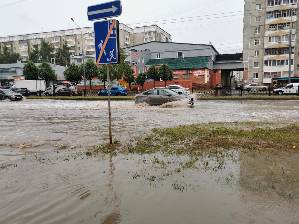Очевидцы прислали фотографии, где наглядно видно, что микрорайон «Сомбатхей» опять «уходит под воду». Ливневая канализация на ул. Воинов-Интернационалистов не справляется с количеством выпавших сегодня осадков.