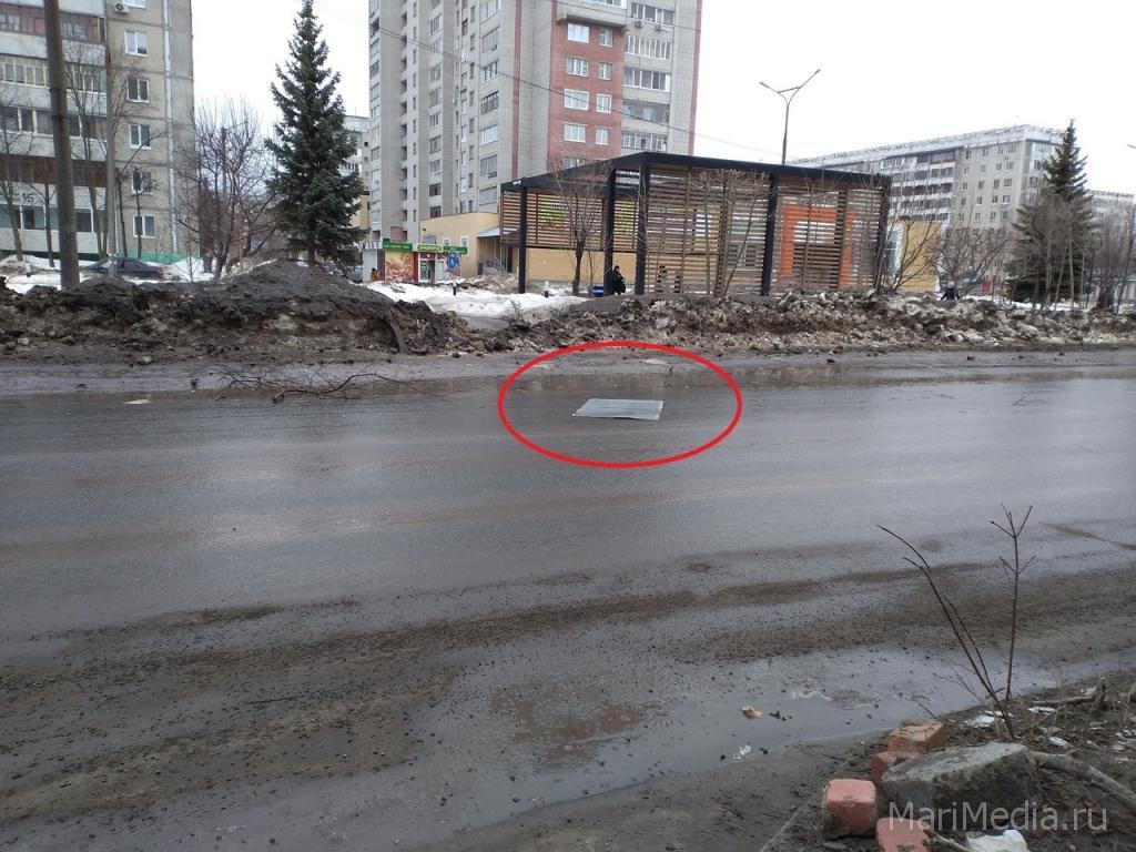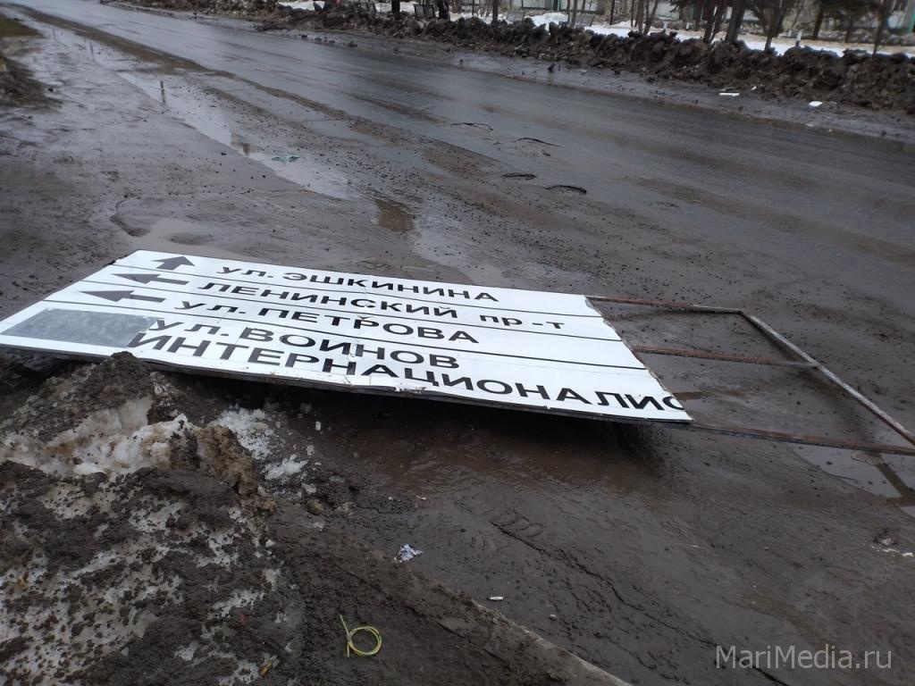 Напомним, ещё 18 февраля ИА МариМедиа публиковало, опять же со слов очевидцев, материал о том, что именно этот металлический указатель может рухнуть или на пешеходов, или на проезжую часть (в зависимости от направления ветра).