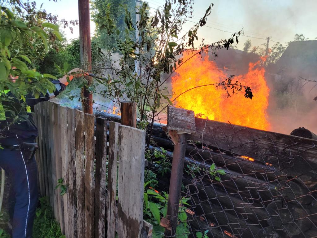 При объезде территории полицейские заметили дым со стороны частного сектора в переулке Ушакова. Подъехав к месту возгорания, они обнаружили горящую нежилую постройку. Опасность ситуации заключалась в том, что в сухую ветреную погоду огонь в любой момент мог перекинуться на соседний участок, где находился деревянный жилой дом.