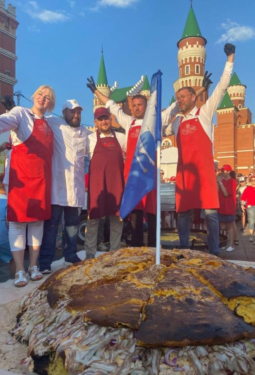 Сегодня, 6 августа, на Патриаршей площади Иван Антропов со своей командой поваров приготовили огромный вкусный бургер диаметром 178 см и весом 857 кг.