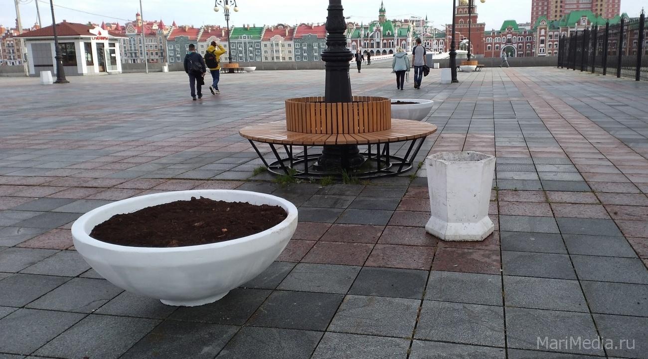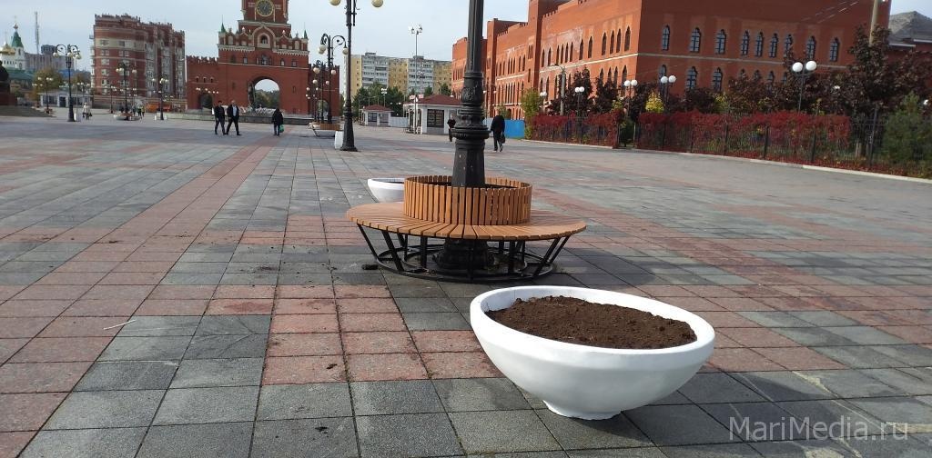 На площади Пресвятой Девы Марии в Йошкар-Оле коммунальные службы города установили новые урны и вазоны для цветов.