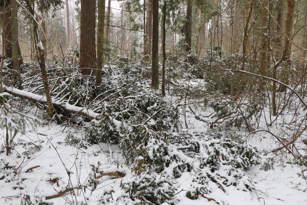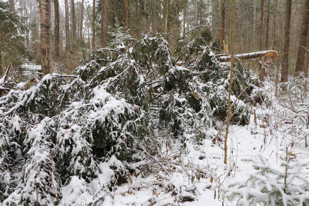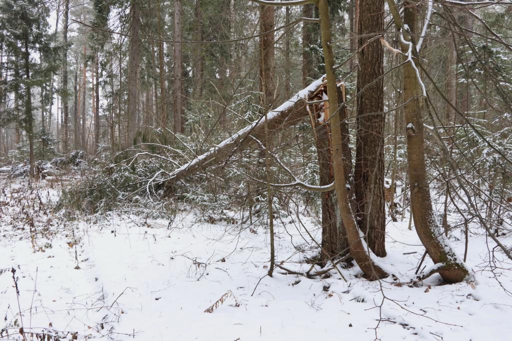 На фото видно, какой бурелом образовался среди леса. «Вот это сила ветра!» — констатирует фотограф.