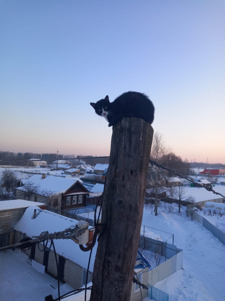 Обеспокоенные жители деревни обратились к энергетикам за помощью: на опору линии электропередачи высотой около 10 метров забралась деревенская кошка и жалобно звала на помощь. Для спасения животного требовалась автовышка, потому что ни сами жители, ни спасатели других ведомств не смогли снять животное с опоры ЛЭП.