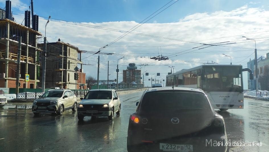 В Йошкар-Оле на оживлённом перекрёстке у моста работает регулировщик