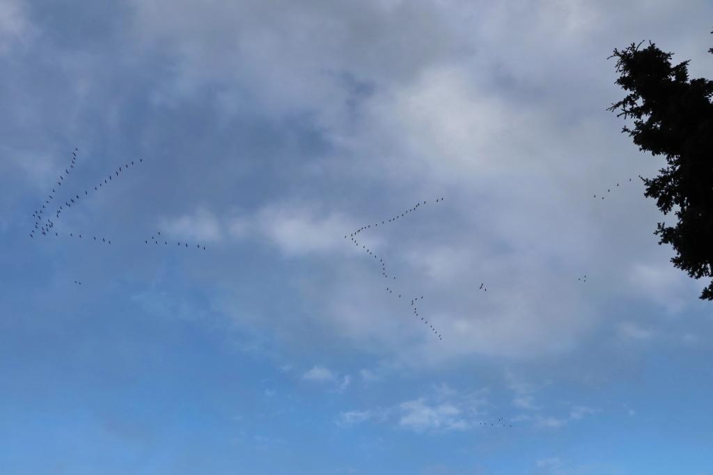 Жители Йошкар-Олы поделились интересными наблюдениями. В небе над городом были замечены большие стаи пролетающих гусей. Птицы летели, разбившись на множество косяков.